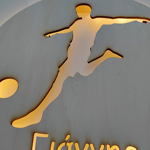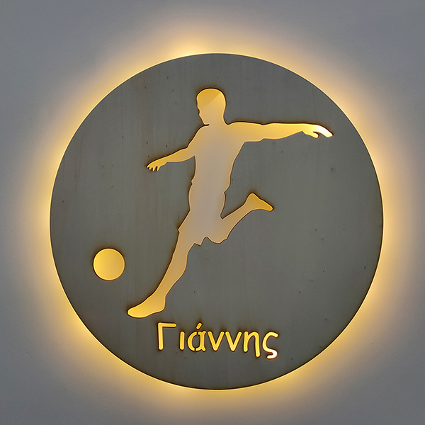 Football player wooden lamp with the name of your choice