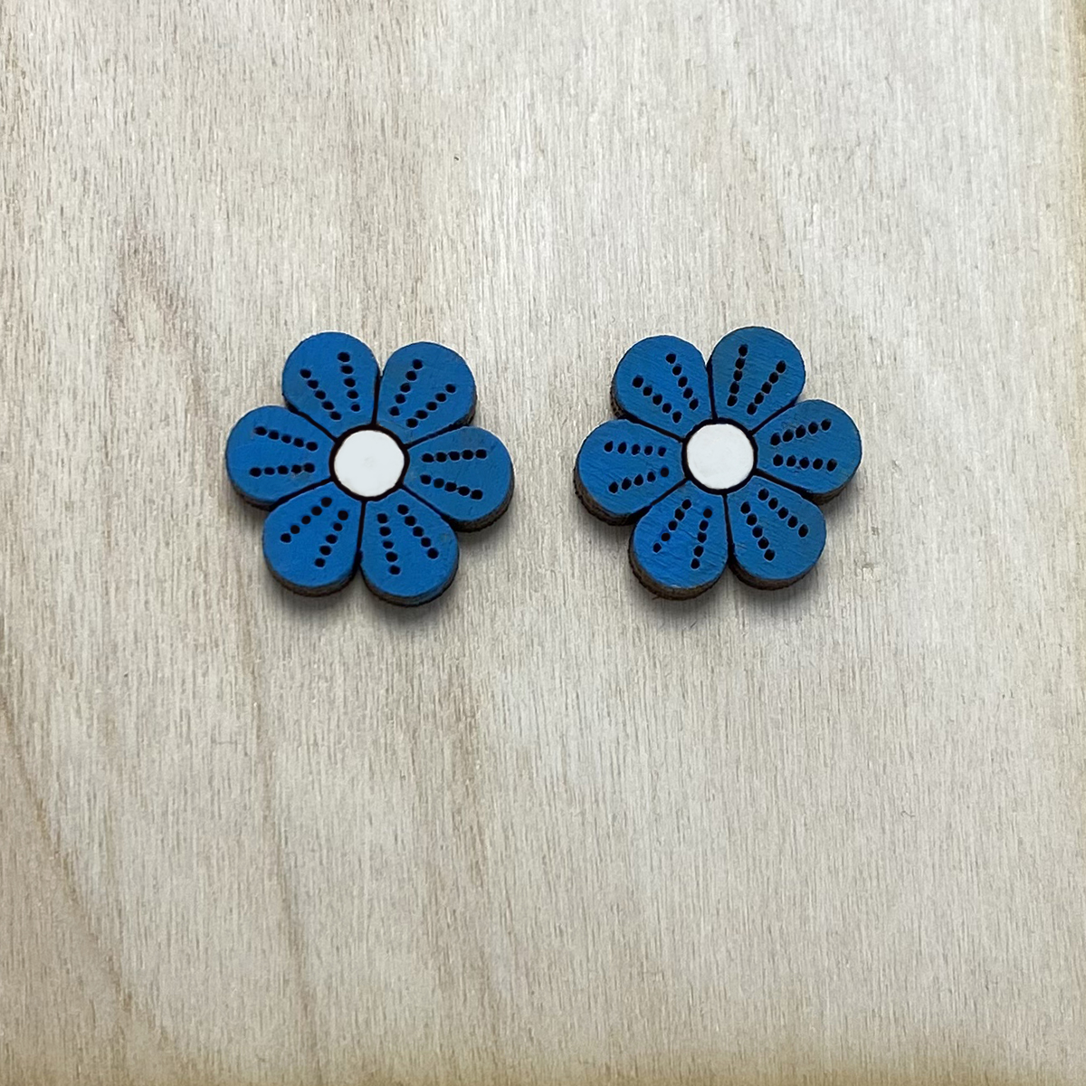 Ξύλινα σκουλαρίκια με σχέδιο λουλουδιού.