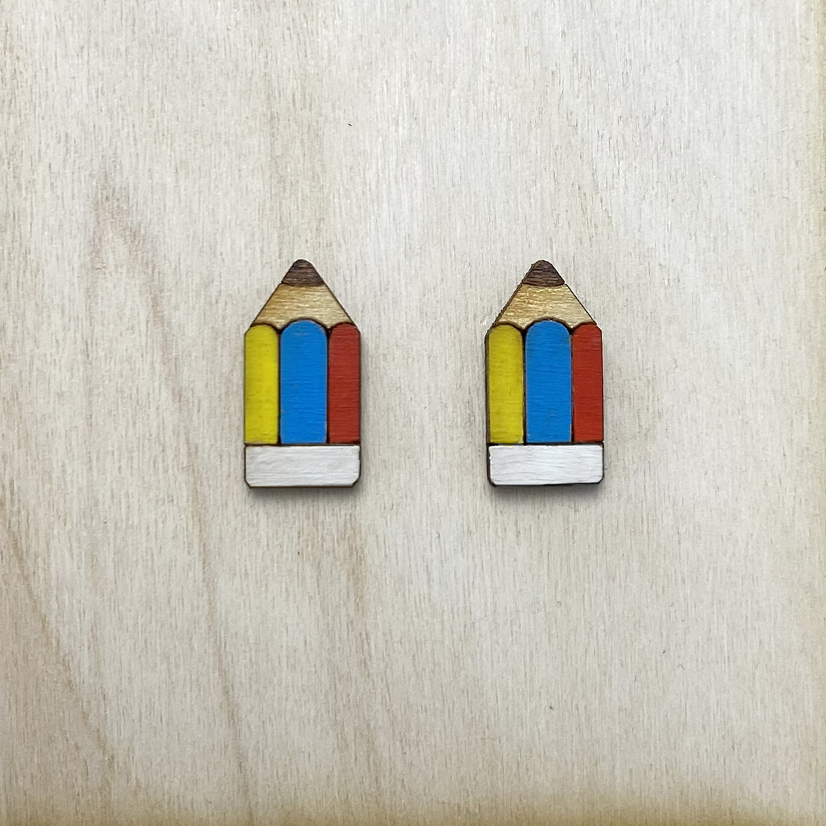 Ξύλινα σκουλαρίκια με σχέδιο μολυβιού.