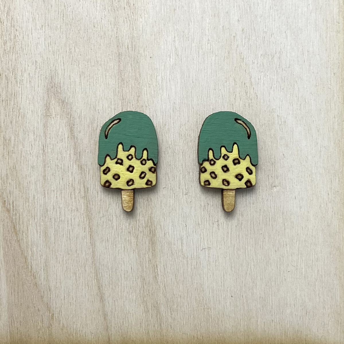 Ξύλινα σκουλαρίκια με σχέδιο παγωτό ξυλάκι.