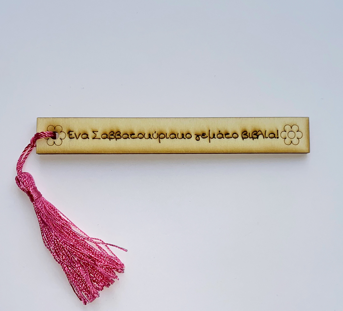 Ξύλινος σελιδοδείκτης με φράση Ένα ΣΚ γεμάτο βιβλία.