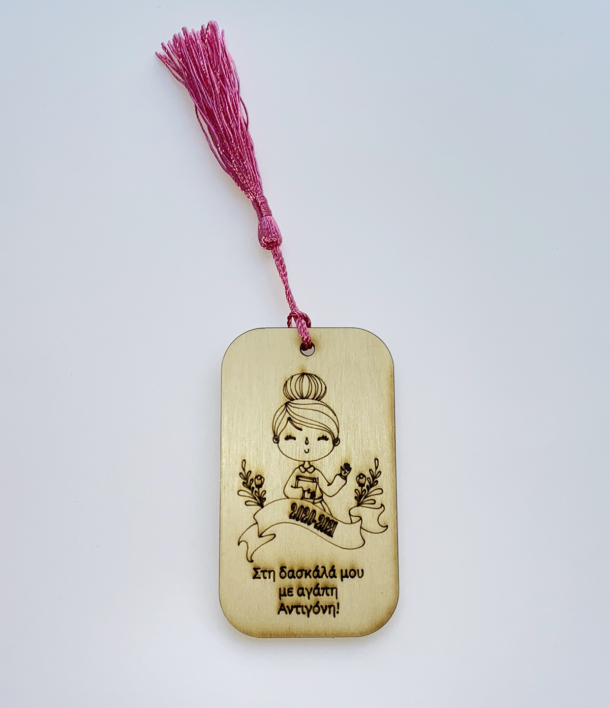 Ξύλινος σελιδοδείκτης με χάραξη “Στη δασκάλα μου με αγάπη” και το όνομα της επιλογής σας.