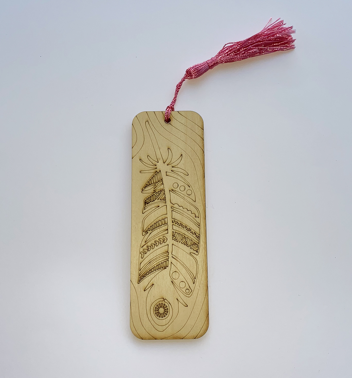 Ξύλινος σελιδοδείκτης με χάραγμα φτερού.