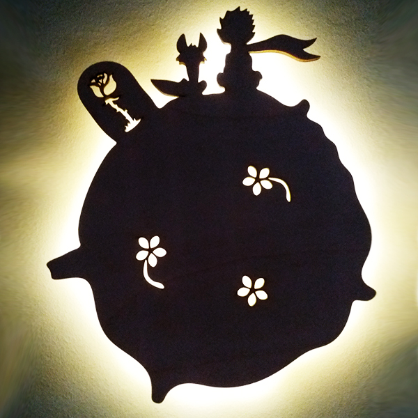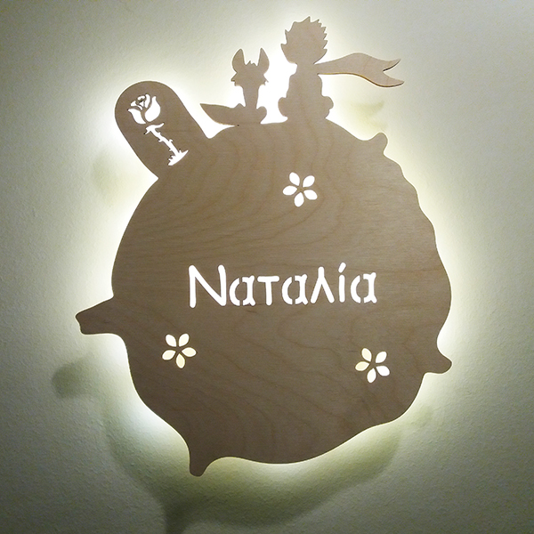 Ξύλινο Επιτοίχιο  Φωτιστικό Μικρός Πρίγκιπας με την αλεπού, το τριαντάφυλλο, πλανήτες, αστέρια και το όνομα της επιλογής σας!