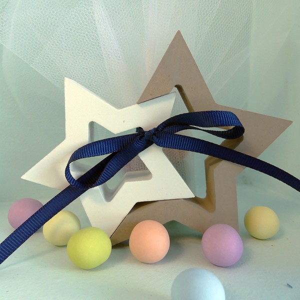 Μπομπονιέρα με ξύλινα διακοσμητικά αστέρια .