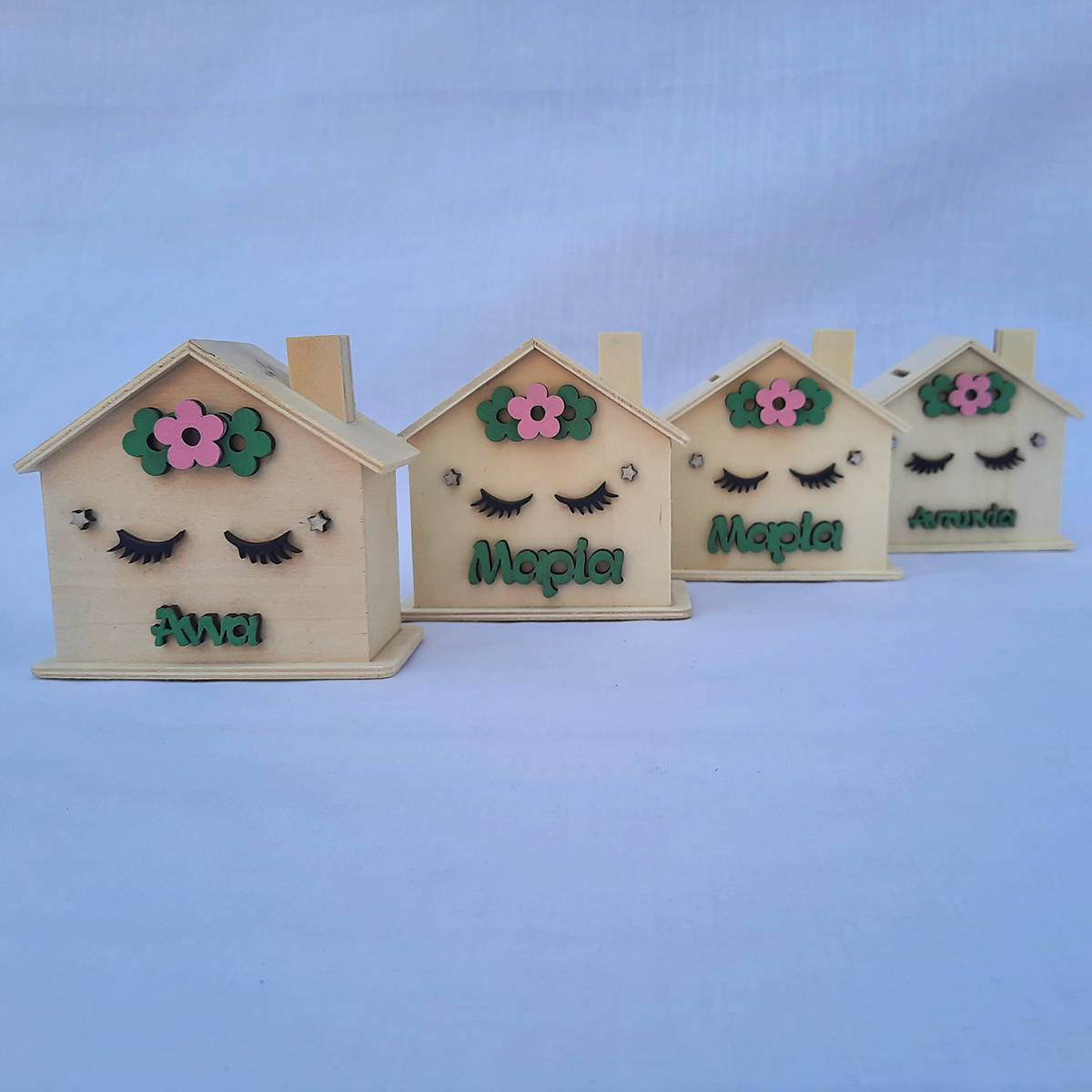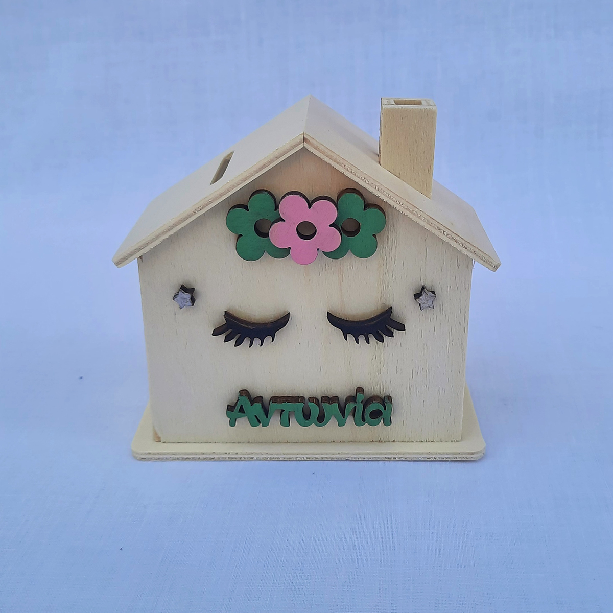 Ξύλινος Κουμπαράς με Ματάκια και το όνομα της επιλογής σας !