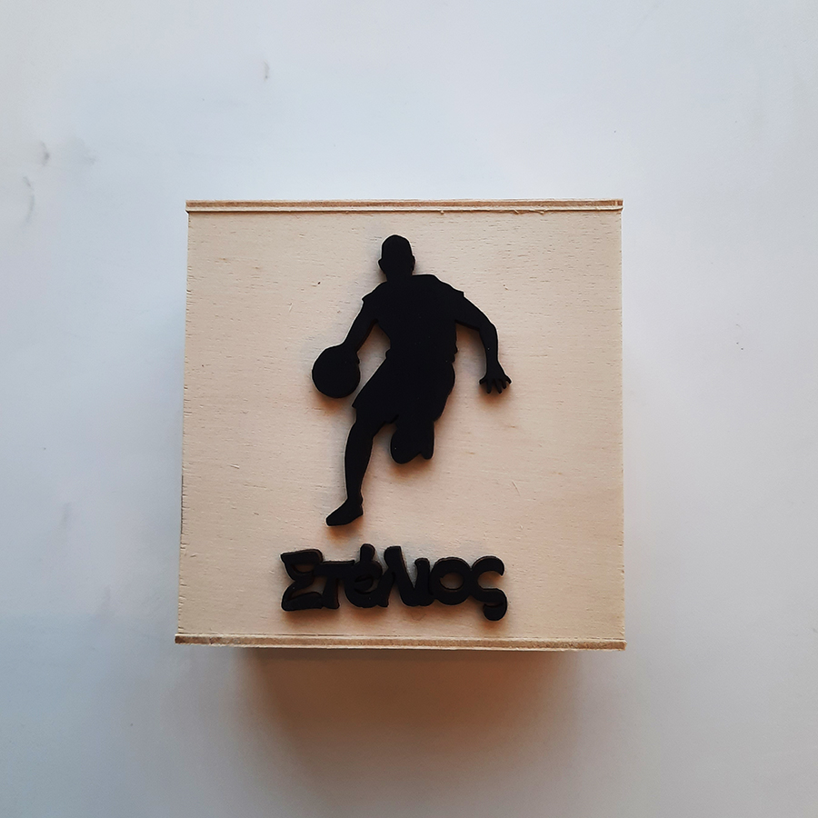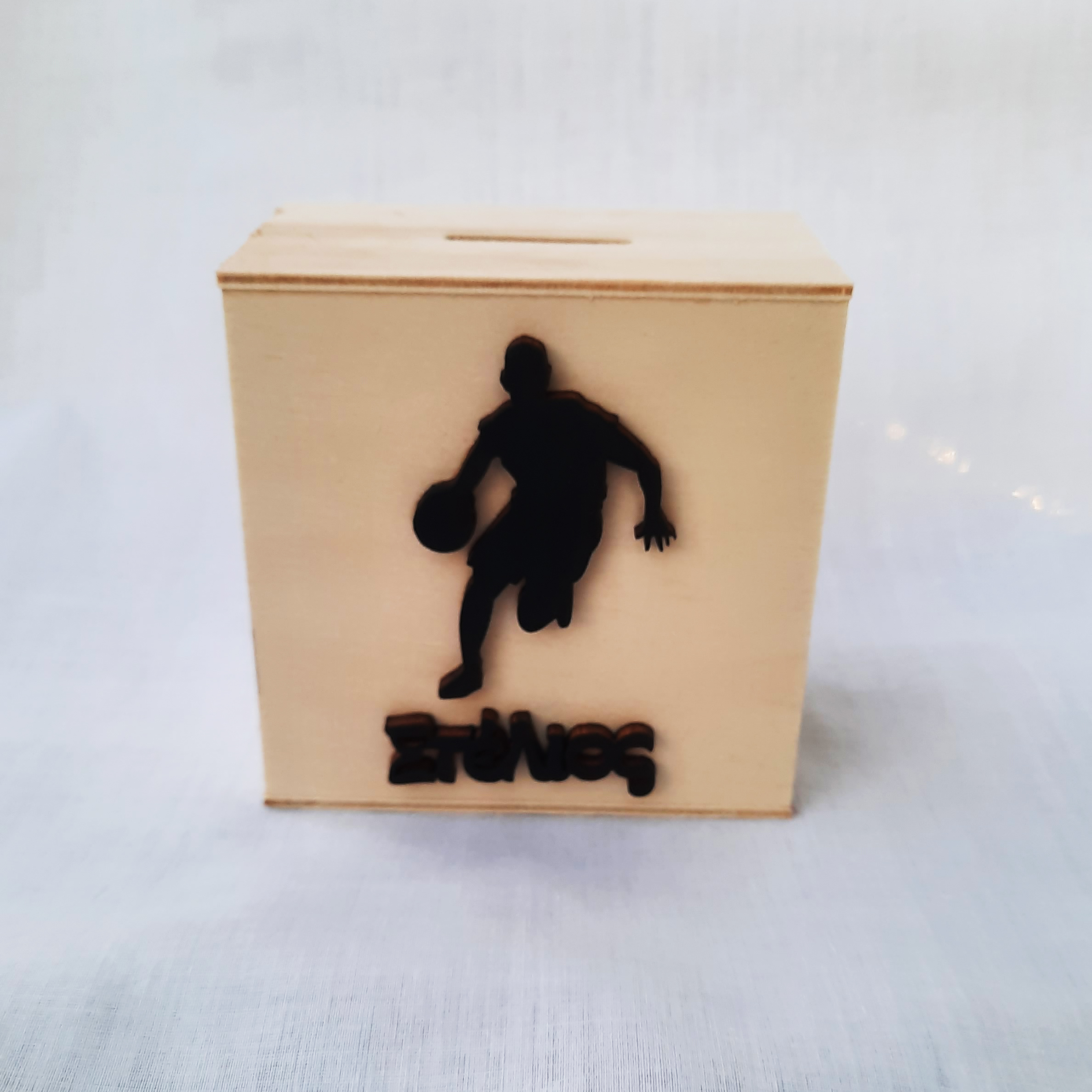 Ξύλινος κουμπαράς με μπασκετμπολίστα και το όνομα της επιλογής σας !