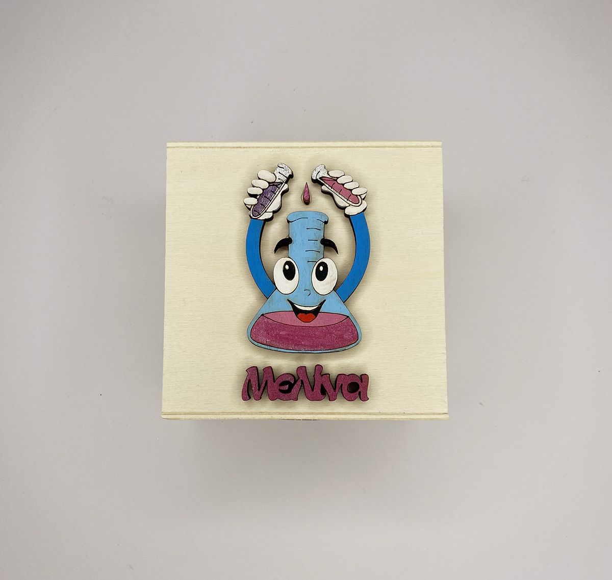 Ξύλινος κουμπαράς με θέμα τη χημεία και το όνομα της επιλογής σας.