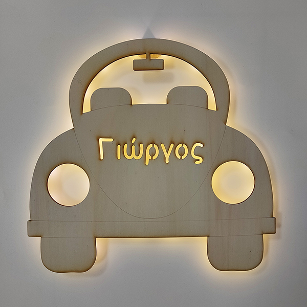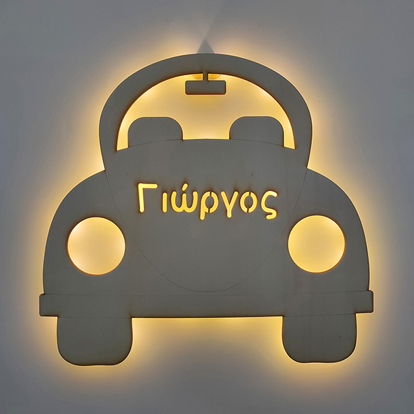 Φτιαγμένο από κόντρα πλακέ 4 χιλ κομμένο σε μηχάνημα laser cutter. Τα επιτοίχια φωτιστικά είναι φτιαγμένα με λαμπάδια led και δουλεύουν είτε με μπαταρία, είτε με ρεύμα ανάλογα την επιλογή σας!