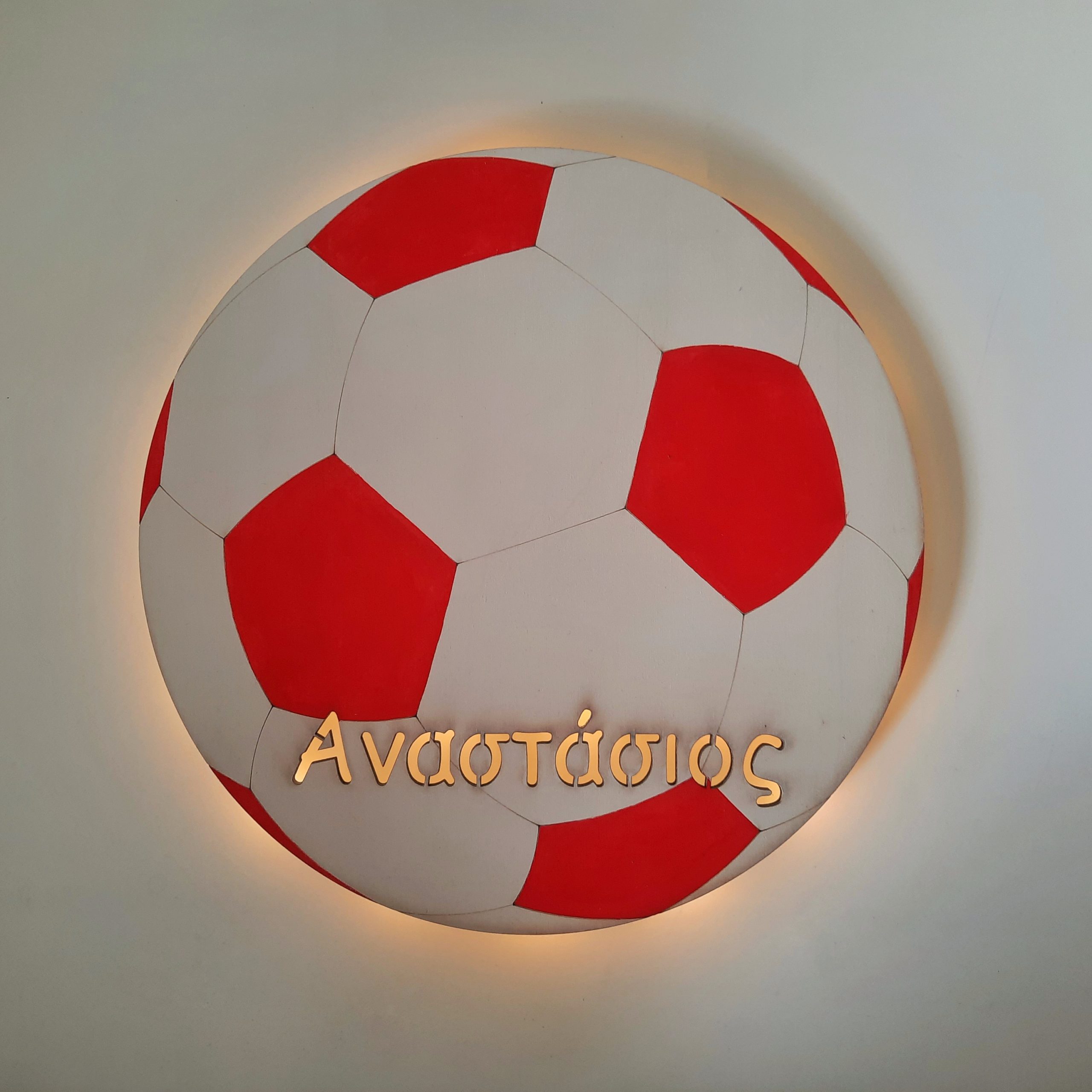 Φτιαγμένο από κόντρα πλακέ 4 χιλ κομμένο σε μηχάνημα laser cutter, ζωγραφισμένο στο χέρι. Τα επιτοίχια φωτιστικά είναι φτιαγμένα με λαμπάδια led και δουλεύουν είτε με μπαταρία, είτε με ρεύμα ανάλογα την επιλογή σας!