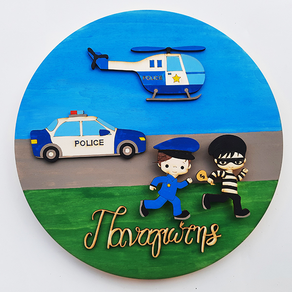 Ξύλινο Επιτοίχιο Φωτιστικό με Police 3D με το όνομα της επιλογής σας ζωγραφισμένο στο χέρι.