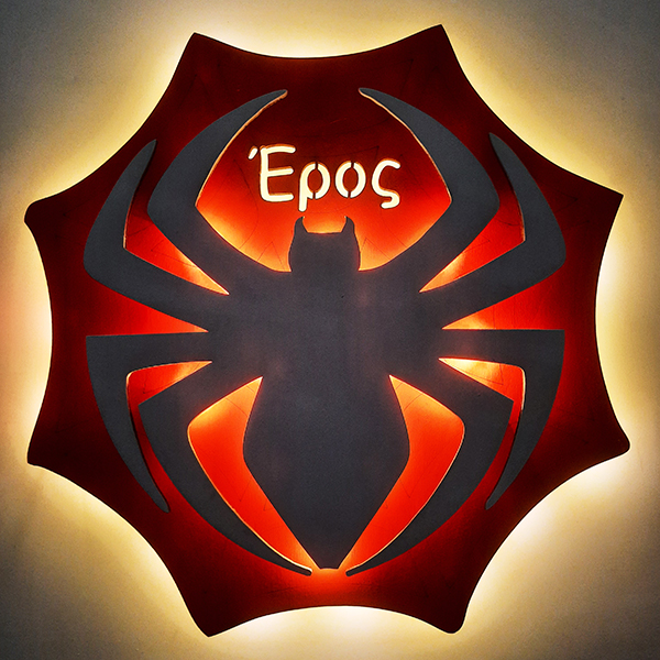 Ξύλινο Επιτοίχιο Φωτιστικό Spider Man 3D με το όνομα της επιλογής σας ζωγραφισμένο στο χέρι.