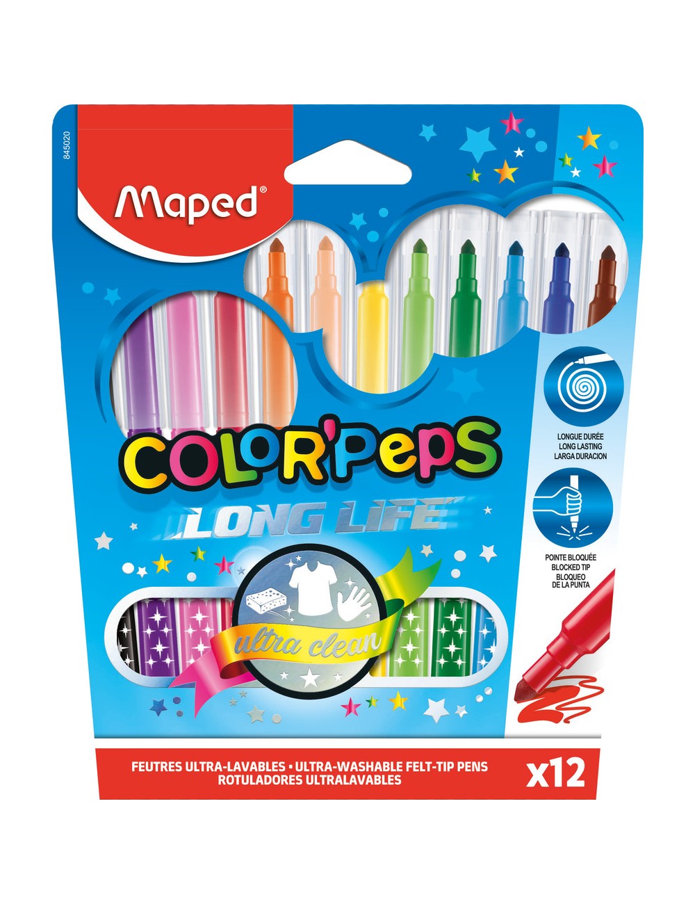 Οι μαρκαδόροι Long Life είναι μεγάλης διάρκειας, δεν ξεραίνονται αν μείνουν ανοικτοί χωρίς καπάκι για κάποιες μέρες και ξεπλένονται εύκολα από το δέρμα και τα περισσότερα υφάσματα. Η μύτη τους είναι τριγωνική και γράφει λεπτά ή χοντρά ανάλογα πώς κρατάτε τον μαρκαδόρος. Είναι σχεδιασμένοι σύμφωνα με τους κανονισμούς παιχνιδιών.