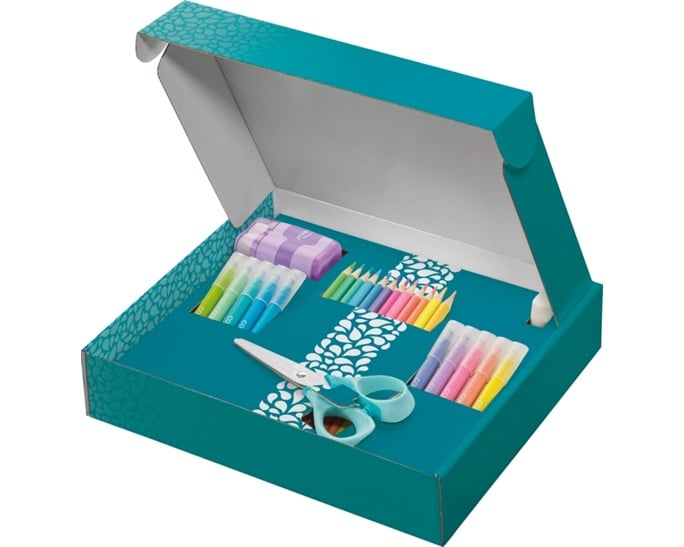 Το σετ παστέλ περιλαμβάνει εργαλεία και αξεσουάρ σε παστελ αποχρώσεις. Το διακοσμημένο κουτί είναι ιδανικό για να αποθηκεύσετε τα αξεσουάρ ζωγραφικής σας. Το σετ περιλαμβάνει: 10 μαρκαδόρους, 12 ξυλομπογιές, 1 ψαλίδι 13cm, 1 γόμα-ξύστρα, 1 ανταλλακτικό γόμας και 1 μολυβοθήκη για να την φτιάξετε μόνοι σας.