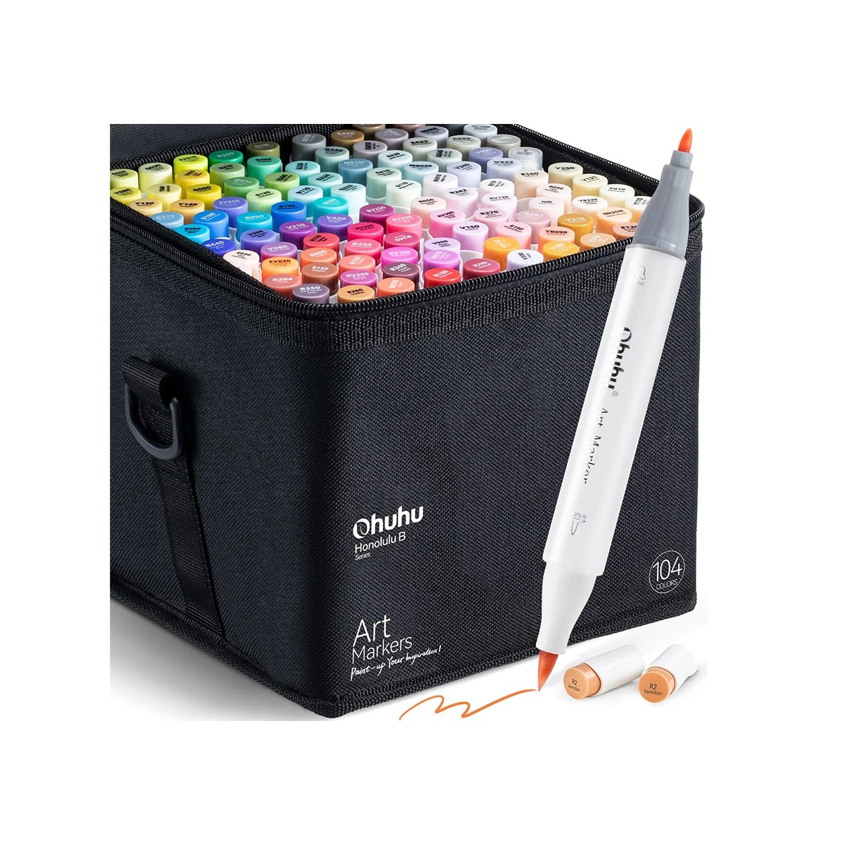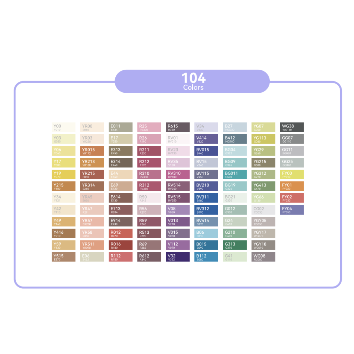 - Tο σετ περιλαμβάνει 104 μαρκαδόρους σε έντονα χρώματα 104 χρώματα και 1 άχρωμο Blender με διπλή μύτη Brush & Fine σε υπέροχη πλαστική κασετίνα μεταφοράς. Είναι κατάλληλοι για εικονογράφηση και σχέδιο. Ιδανικό για παιδιά και ενήλικες.