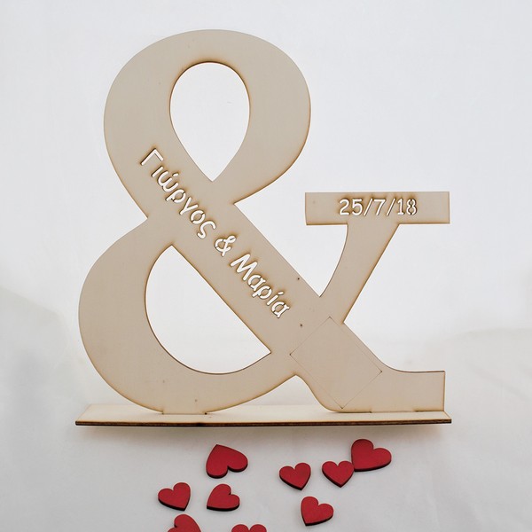 Ξύλινο διακοσμητικό στάντ & με ονόματα και ημερομηνία.