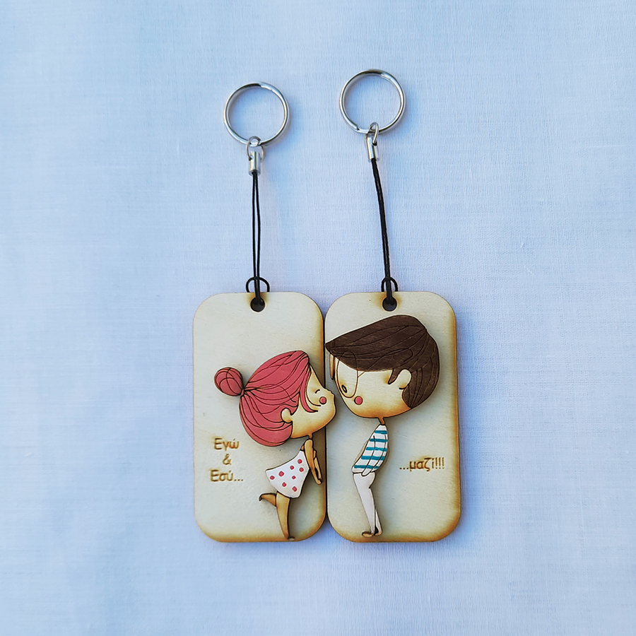 Ξύλινο μπρελόκ ζευγάρι Εγώ & Εσύ… μαζί ζωγραφισμένο στο χέρι.