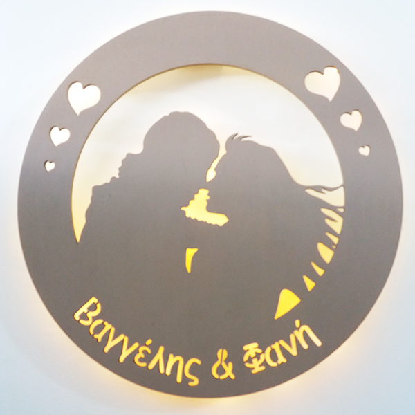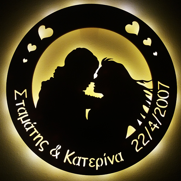 Φτιαγμένο από κόντρα πλακέ 4 χιλ κομμένο σε μηχάνημα laser cutter. Τα επιτοίχια φωτιστικά είναι φτιαγμένα με λαμπάδια led και δουλεύουν είτε με μπαταρία, είτε με ρεύμα ανάλογα την επιλογή σας!