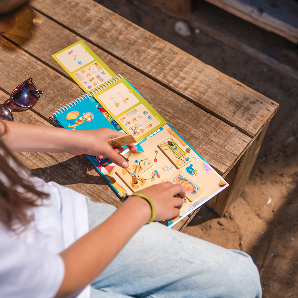 Μπορείτε να βοηθήσετε τα παιδάκια να βρουν τα χαμένα τους παιχνίδια στην πολυσύχναστη παραλία; Ανακαλύψτε το με το μαγνητικό παιχνίδι ταξιδιού της εταιρίας SmartGames! Λύστε τη σπαζοκεφαλιά, τοποθετώντας τα μαγνητάκια στις σωστές θέσεις, έτσι ώστε να δημιουργήσουμε μία διαδρομή από το παιδάκι προς το χαμένο παιχνίδι. Ένας διασκεδαστικός τρόπος για την ανάπτυξη της συγκέντρωσης, της χωροταξικής δεξιότητας και της επίλυσης προβλημάτων! Το μαγνητικό βιβλιαράκι περιλαμβάνει 5 μαγνήτες και 48 προκλήσεις αυξανόμενης δυσκολίας με τις λύσεις τους. Κατάλληλο για ηλικίες άνω των 6 ετών.
