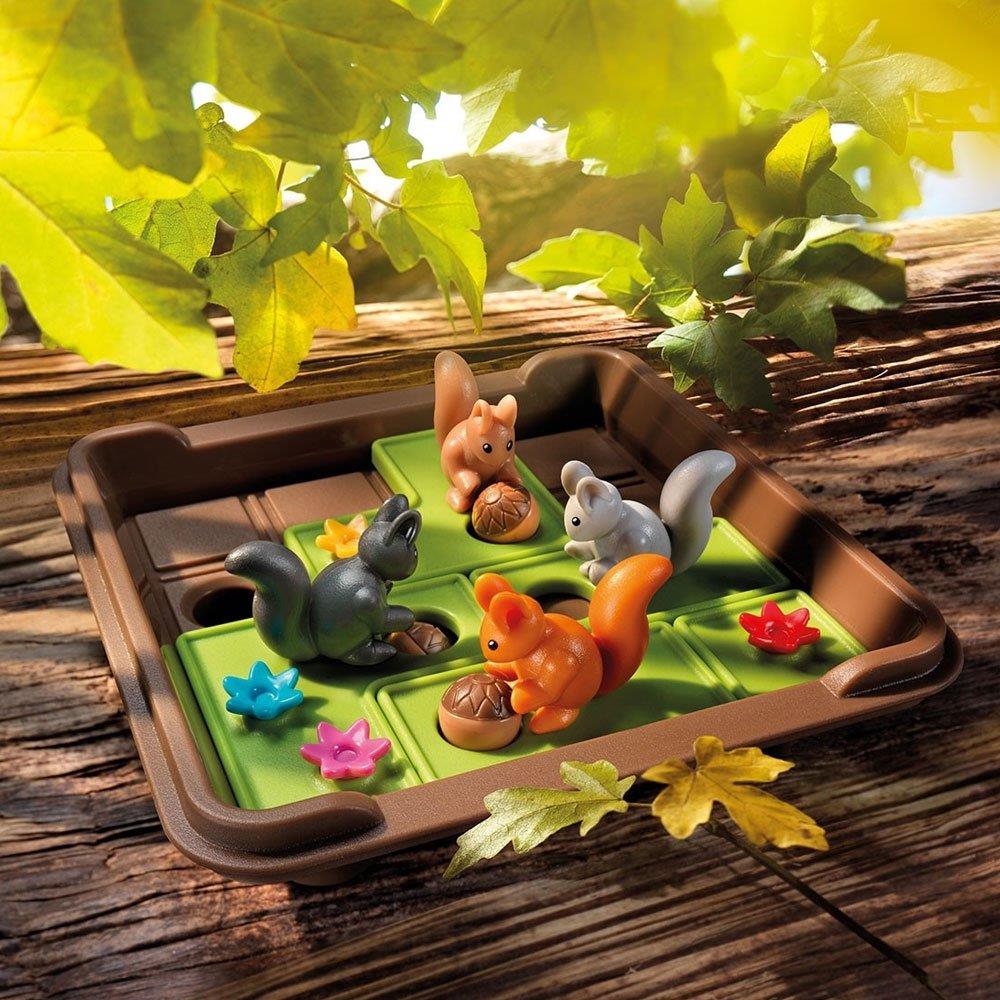 Μπορείτε να βοηθήσετε τους σκίουρους να προετοιμαστούν για τον χειμώνα που έρχεται; Μετακινήστε τα σκιουράκια που βρίσκονται πάνω στα κομμάτια παζλ ώστε να κρύψετε τα βελανίδια. Ένα επιτραπέζιο παιχνίδι που βοηθάει στην εξάσκηση του μυαλού. Περιλαμβάνεται φυλλάδιο οδηγιών με 60 προκλήσεις κλιμακούμενης δυσκολίας. Κατάλληλο για παιδιά ηλικίας 6 ετών και άνω.