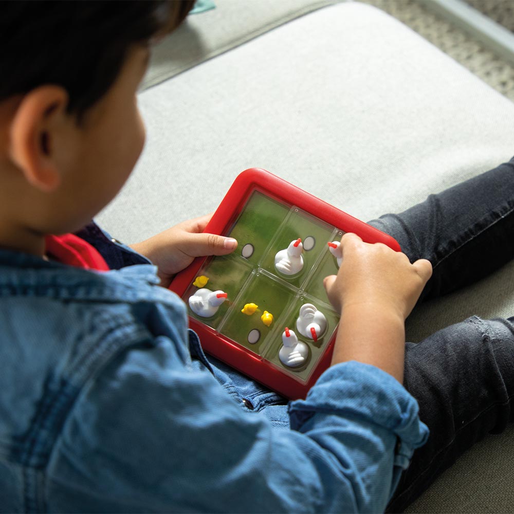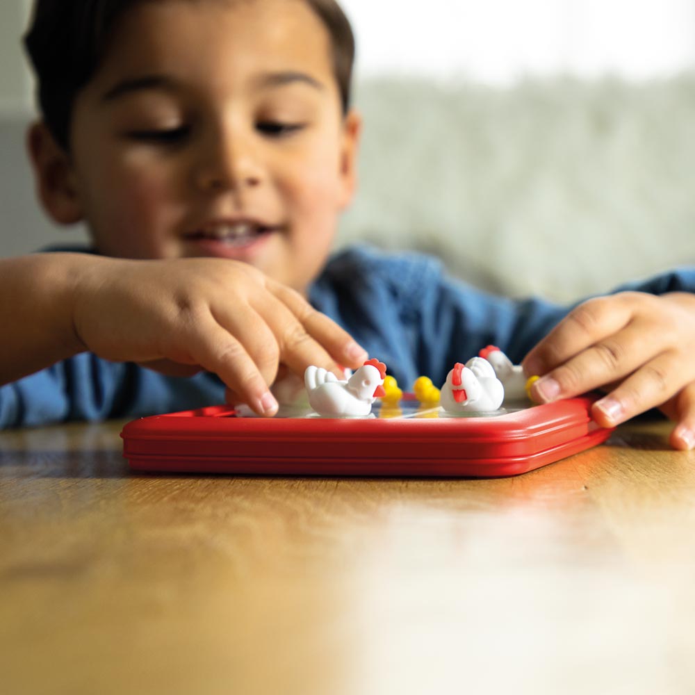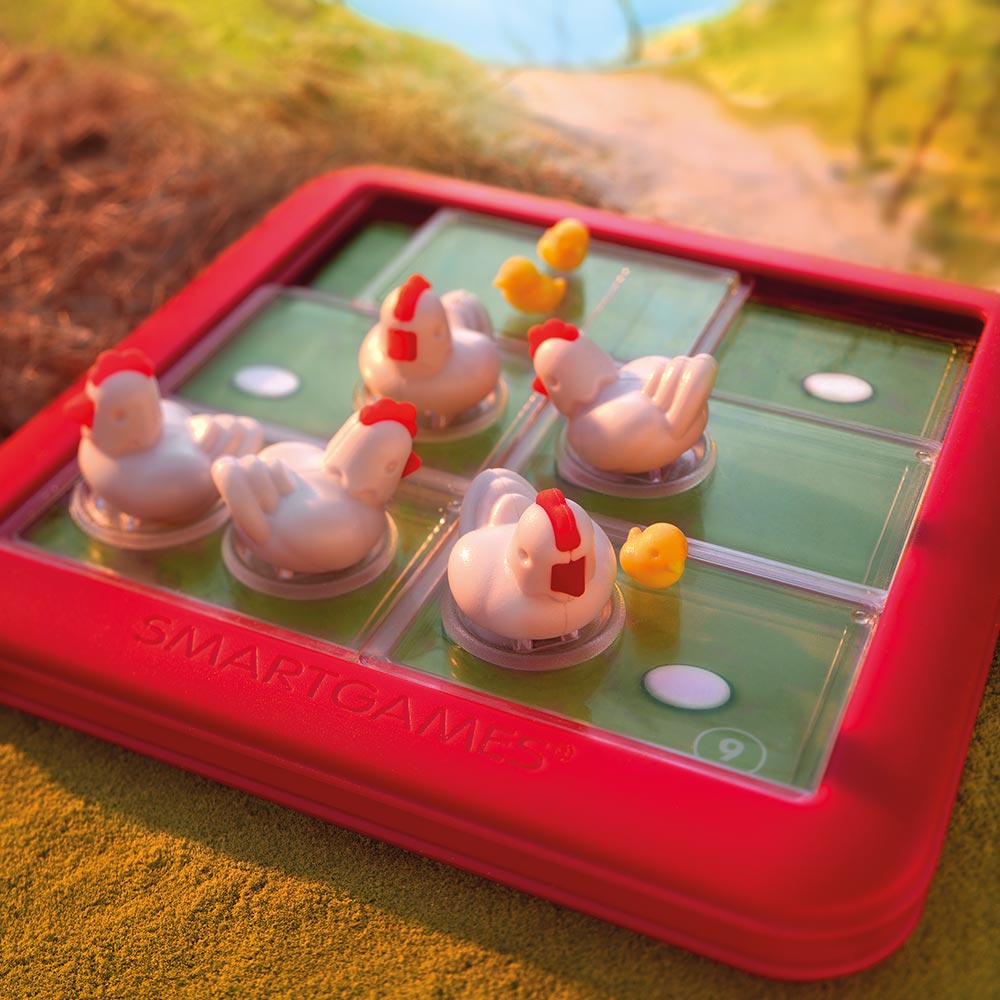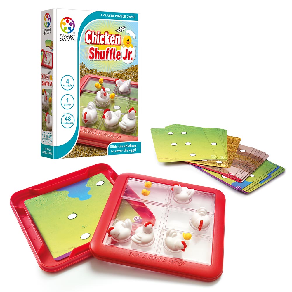 Μπορείτε να βοηθήσετε τις κότες να προστατέψουν τα αυγά τους; Το Chicken Shuffle JR της εταιρίας Smartgames είναι ένα μοναδικό επιτραπέζιο πλακιδίων που σας προκαλεί αν περιφέρετε τις κότες στο ταμπλό μέχρι να καλυφθούν όλα τα αυγά. Η έκδοση junior περιλαμβάνει 48 επίπεδα κλιμακωτής δυσκολίας και εμπλουτίζεται με 3D φιγούρες από κοτούλες και κοτοπουλάκια. Παιχνίδι για παιδιά ηλικίας 4 ετών και άνω. Κατάλληλο για ένα παίκτη.